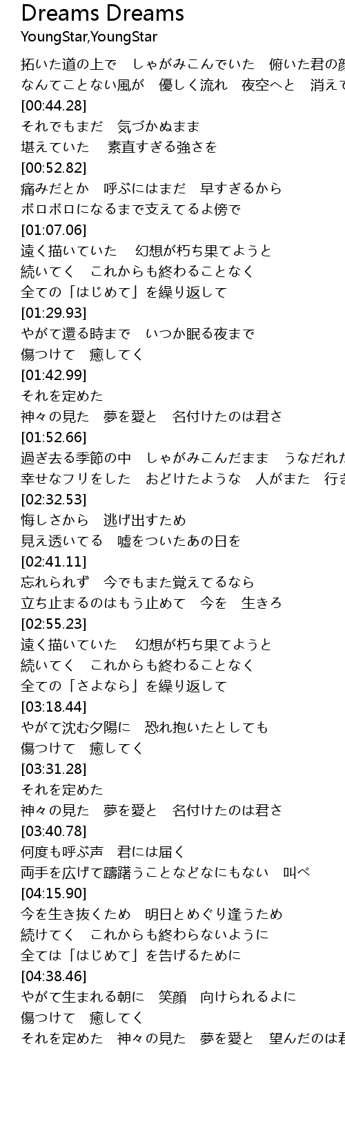 | [04:39.14] | やがて生まれる朝に 笑顔 向けられるよに |