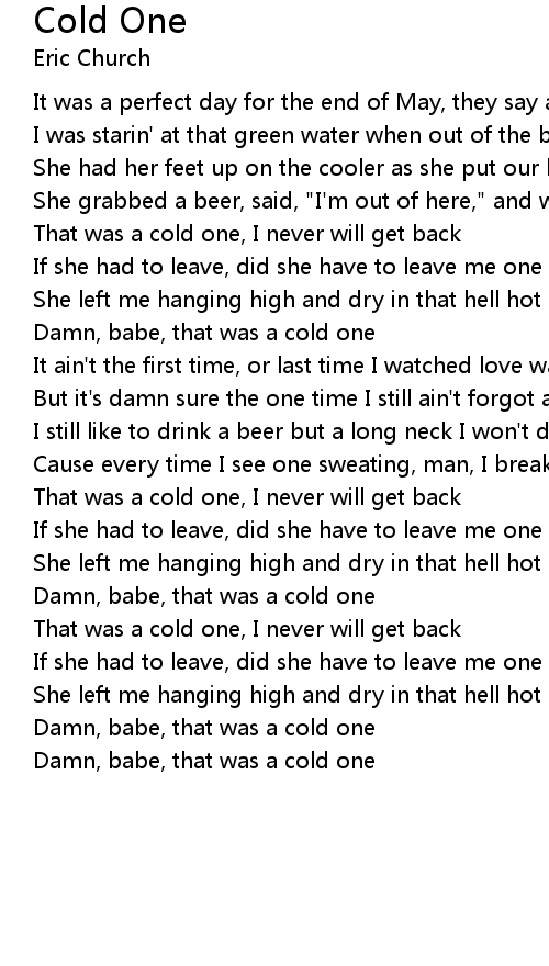 That was a cold one, I never will get back |