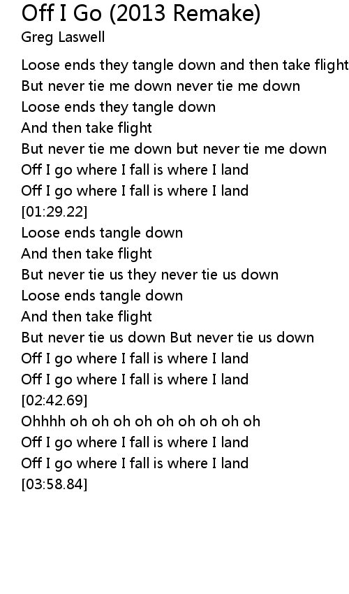 But never tie me down never tie me down |