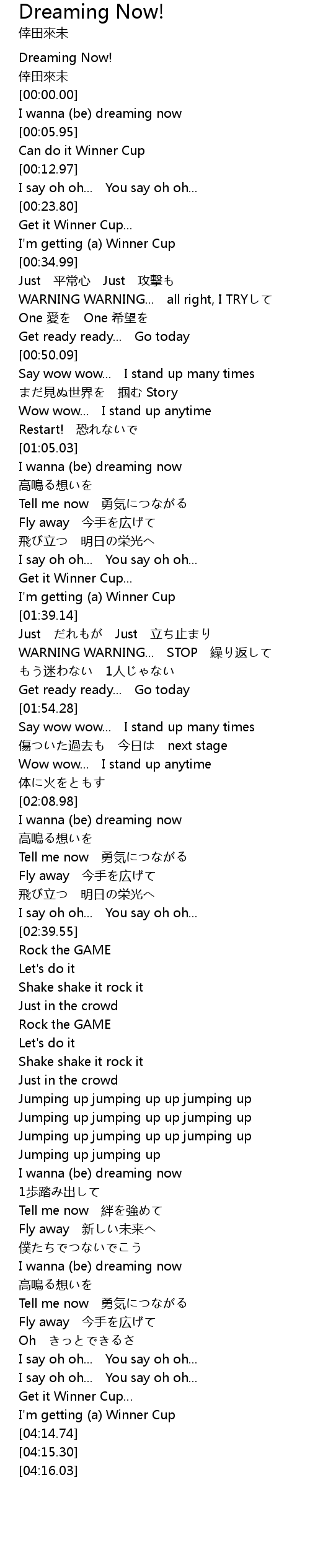| [04:06.72] | Get it Winner Cup… |
