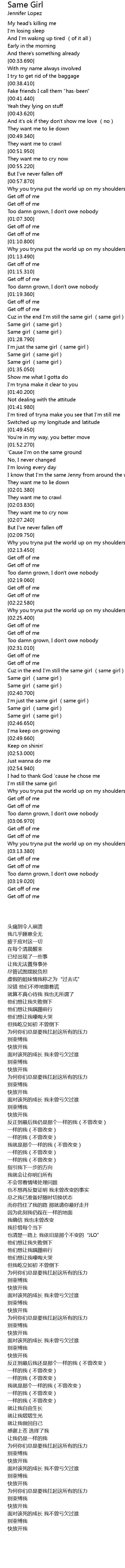 | [02:34.950] | Cuz in the end I' m still the same girl same girl |
