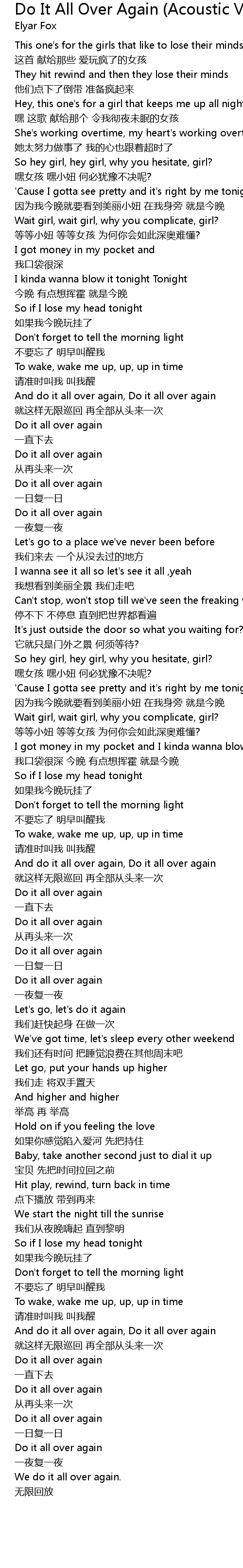 | Song | Do It All Over Again (Acoustic Version) |