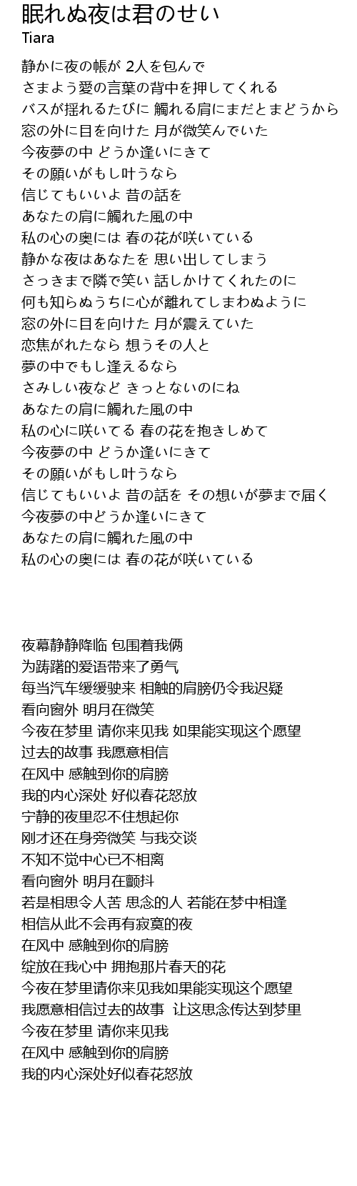 | [01:06.05] | 今夜夢の中 どうか逢いにきて その願いがもし叶うなら |