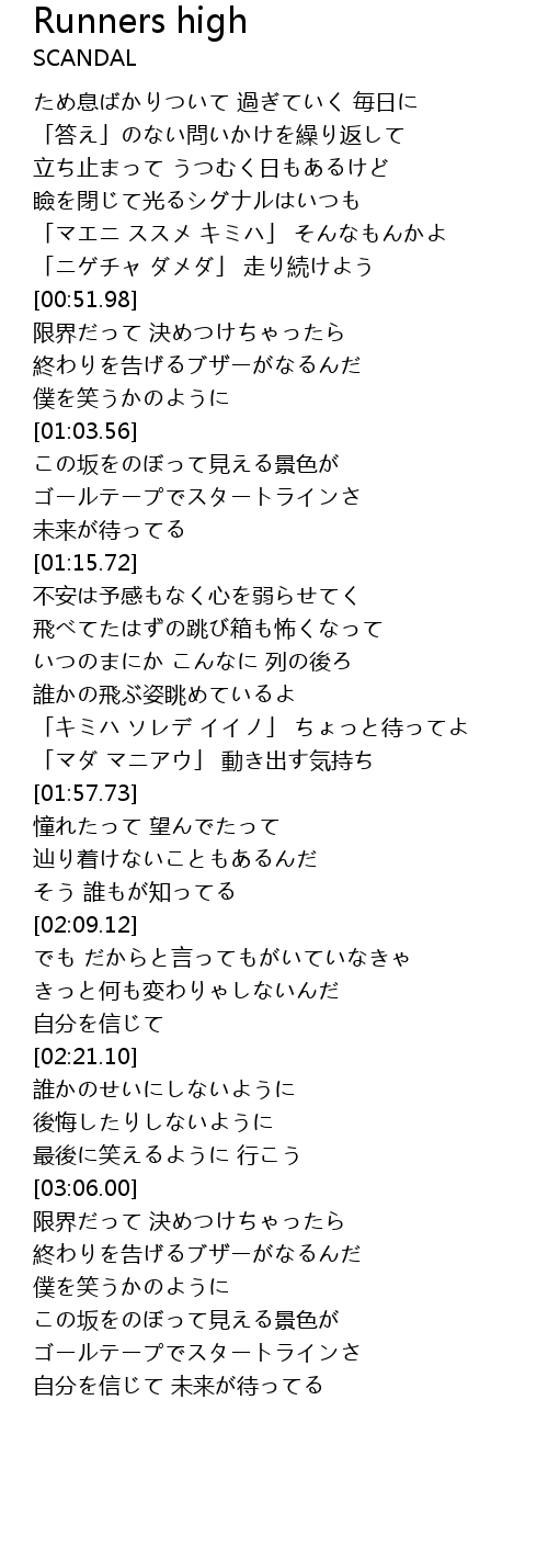| [00:47.60] | 「ニゲチャ ダメダ」 走り続けよう |