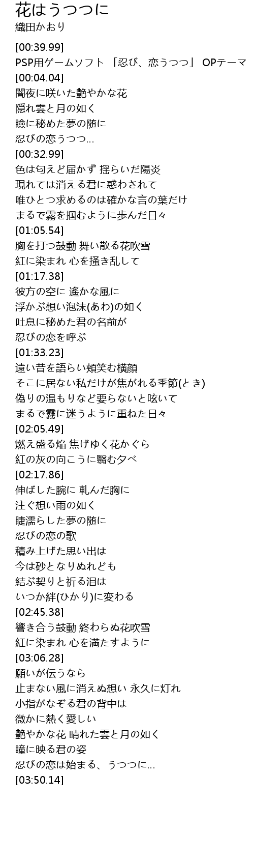 | [00:00.00] | PSP用ゲームソフト 「忍び、恋うつつ」 OPテーマ |