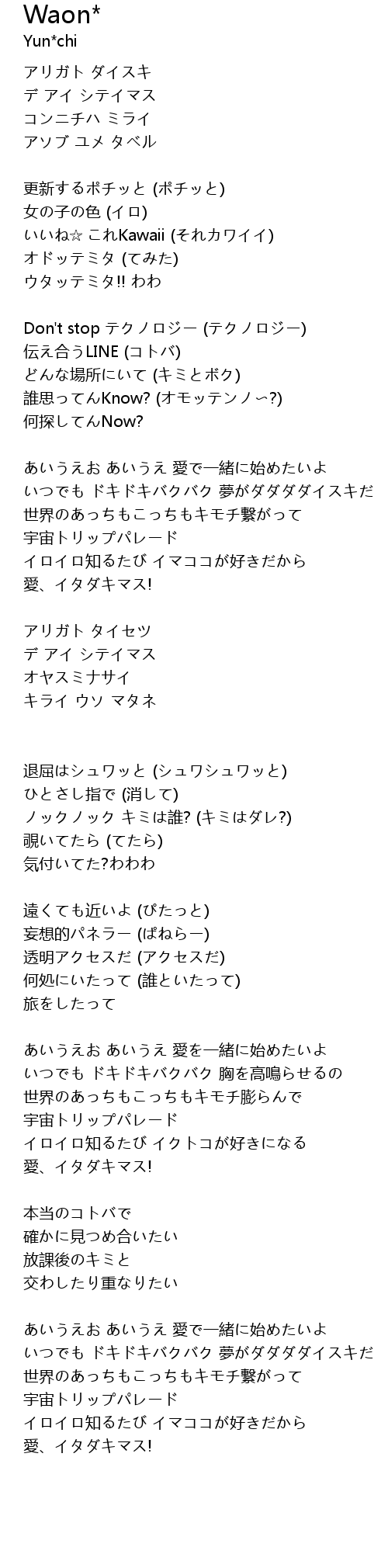 | あいうえお あいうえ 愛を一緒に始めたいよ | |