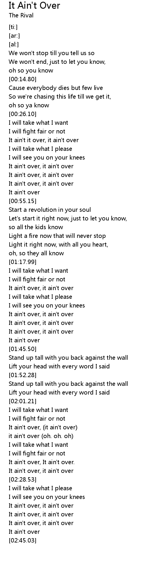 | [02:34.38] | It ain't over, it ain't over |