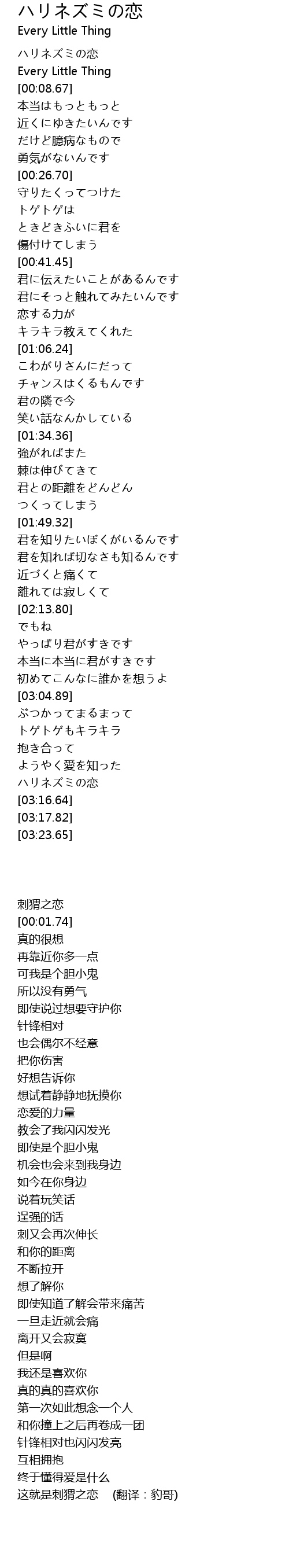 ハリネズミの恋 |