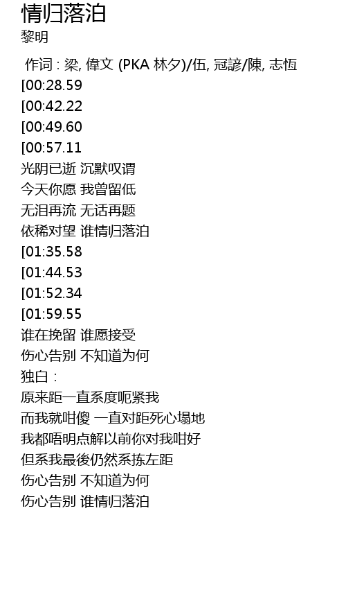 | [04:12.19] | 伤心告别 谁情归落泊 |