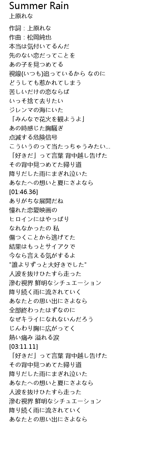 | [03:34.13] | あなたへの想いと夏にさよなら |