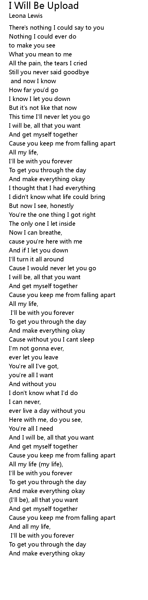 And I will be, all that you want |