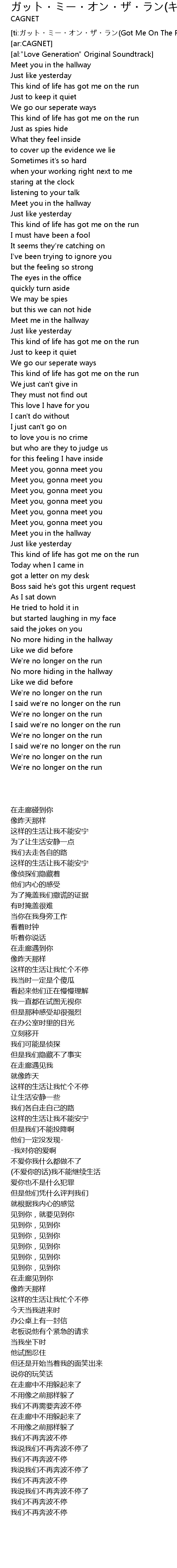 | [ti:ガット・ミー・オン・ザ・ラン(Got Me On The Run)] | |