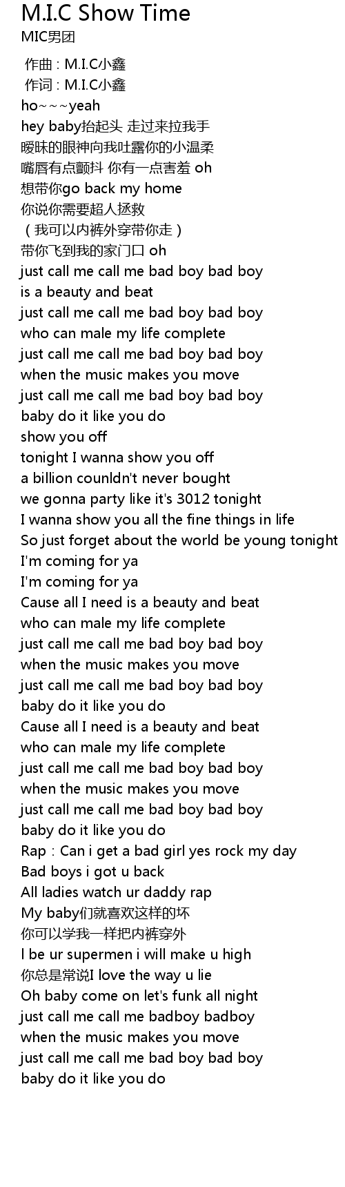 | [00:01.00] | 作词 : M.I.C小鑫 |
