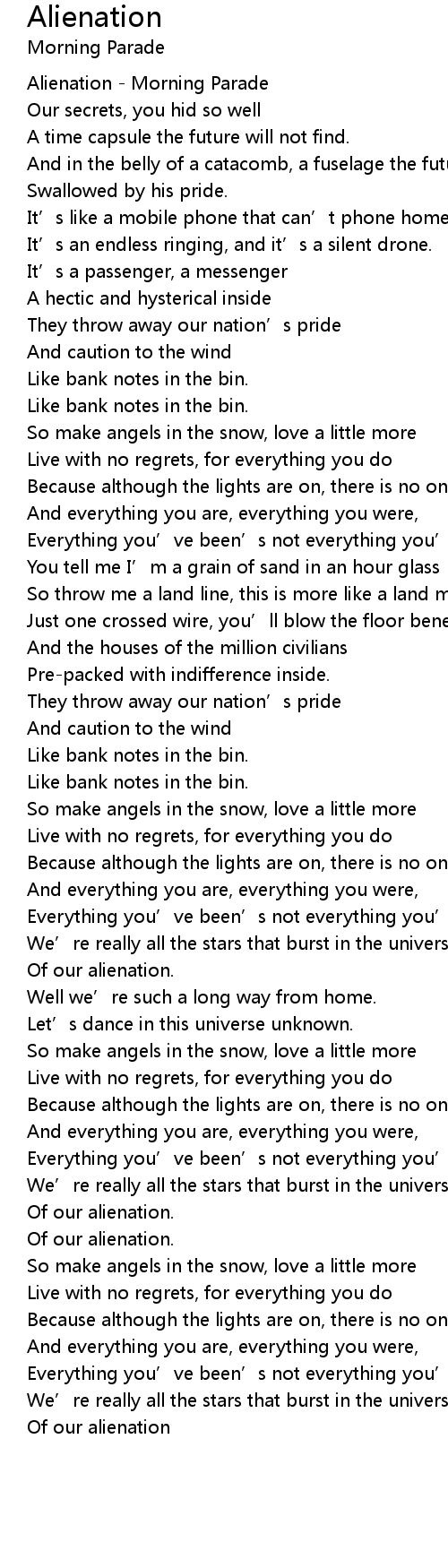 | [00:00.000] | Alienation Morning Parade |