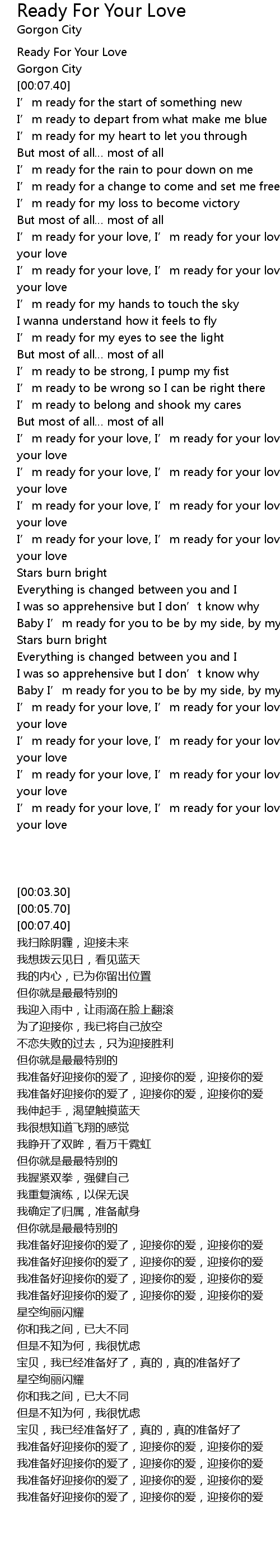 | [03:04.34] | I' m ready for your love, I' m ready for your love, I' m ready for your love |