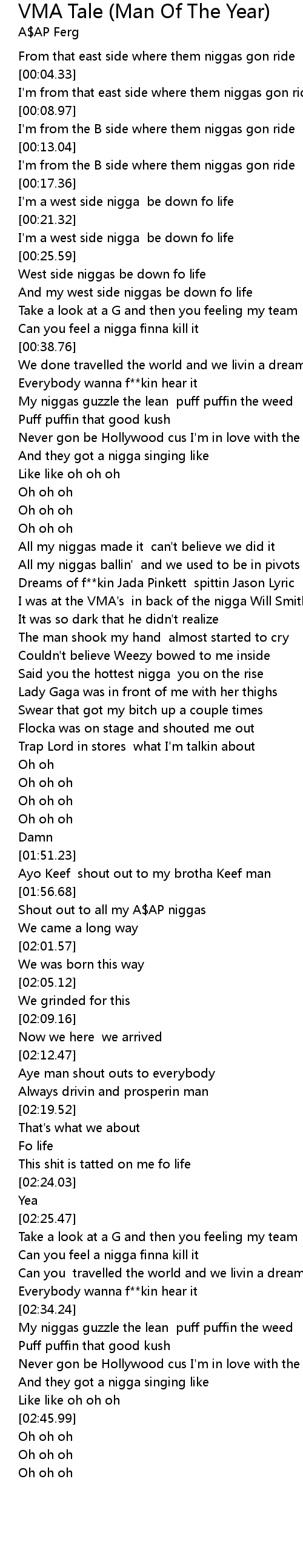 | [01:57.46] | Shout out to all my A$AP niggas |
