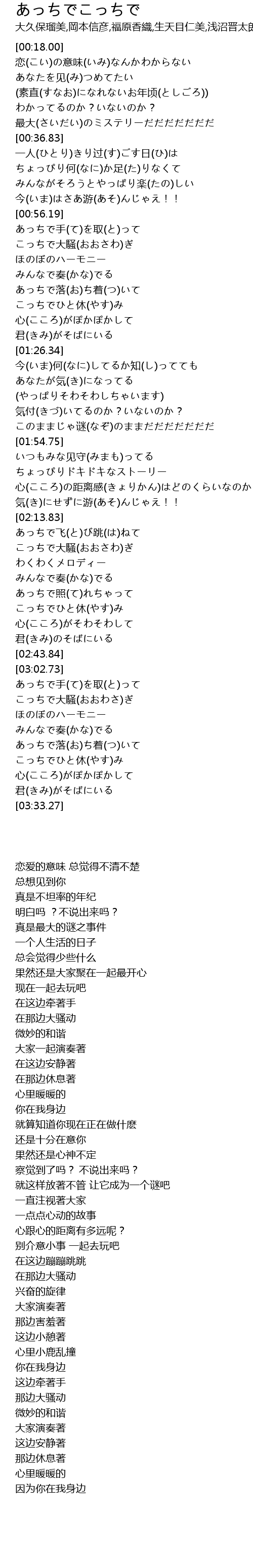 | [02:15.64] | あっちで飞(と)び跳(は)ねて |