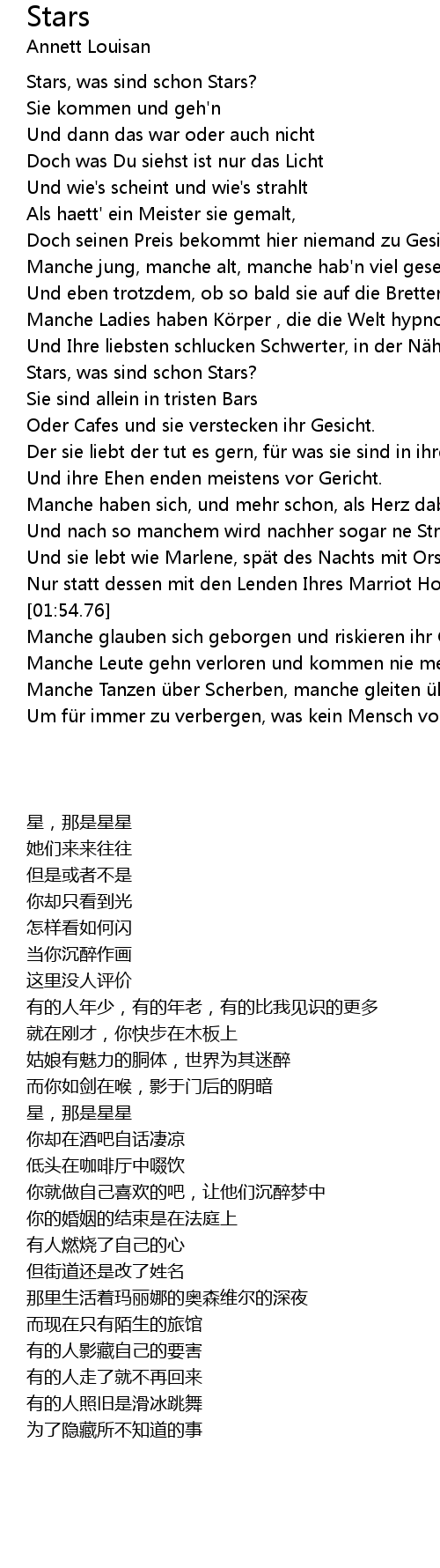 | [00:17.18] | Stars, was sind schon Stars? |