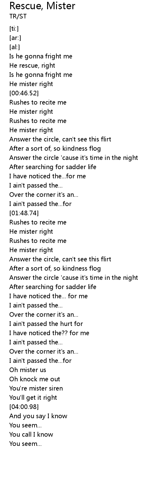 | [00:56.27] | He mister right |