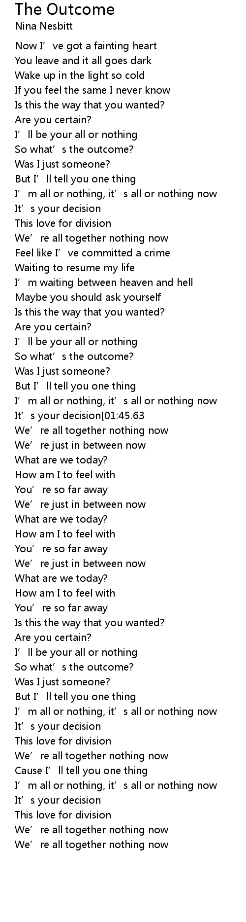 | [02:58.72] | I’m all or nothing, it’s all or nothing now |