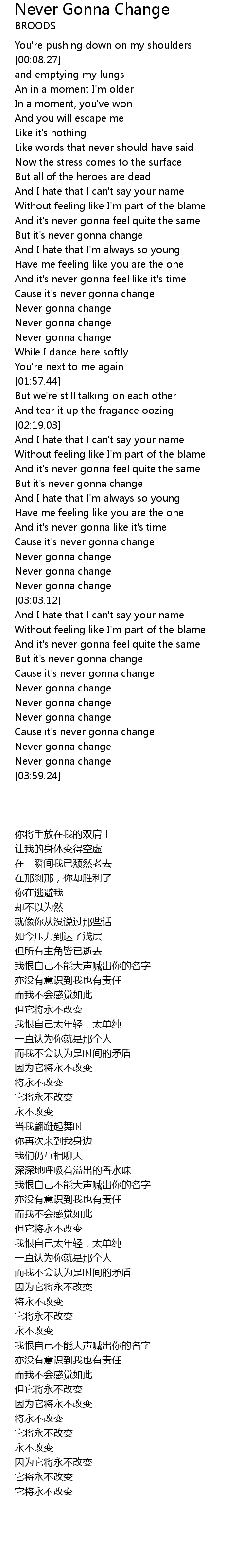 | [03:33.32] | Cause it's never gonna change |