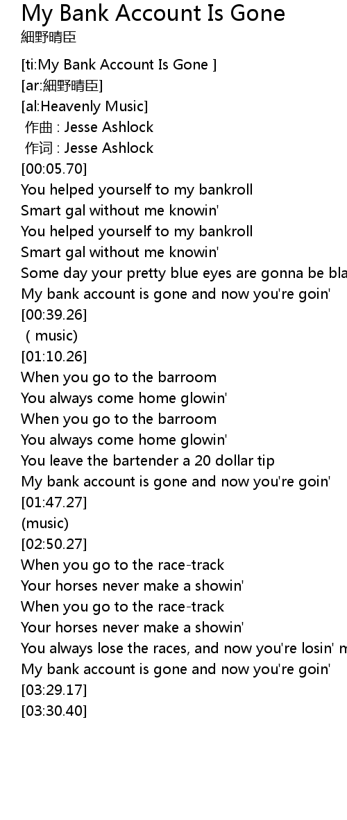 | [ti:My Bank Account Is Gone ] | |