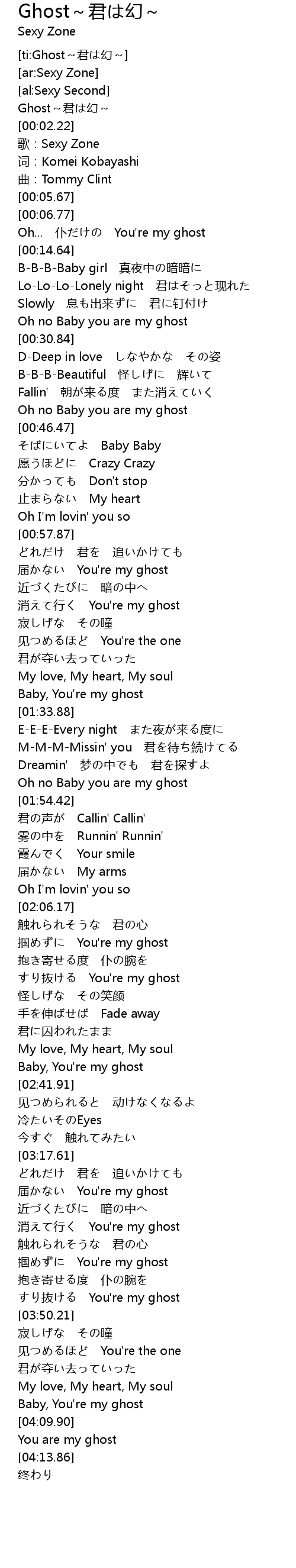 | [04:04.26] | Baby, You' re my ghost |