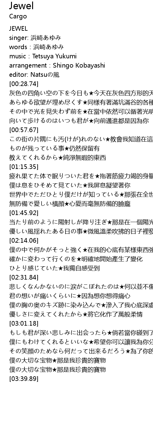 | [03:30.72] | 僕の大切な宝物★那是我珍貴的寶物 |