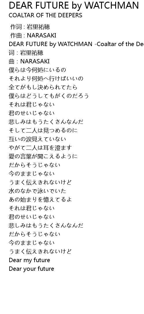 | [00:00.00] | DEAR FUTURE by WATCHMAN -Coaltar of the Deepers |