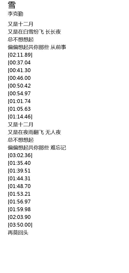 | [00:21.33] | 又是在白雪纷飞 长长夜 |
