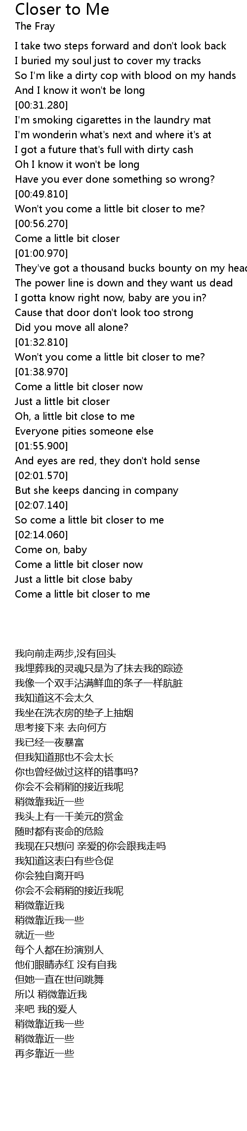| [01:34.140] | Won't you come a little bit closer to me? |