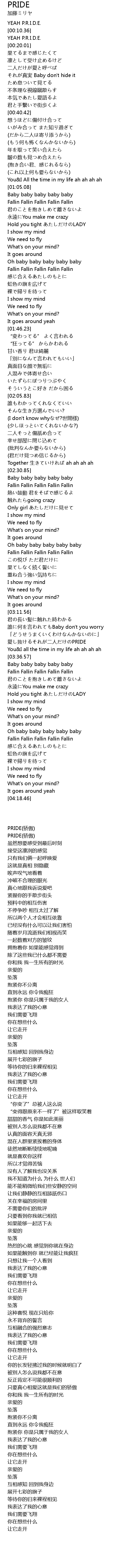 | [00:18.08] | YEAH P.R.I.D.E. |