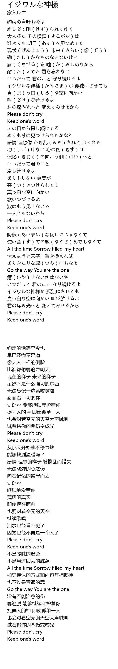 | [01:16.10] | イジワルな神様(かみさま)が 孤独にさせても |