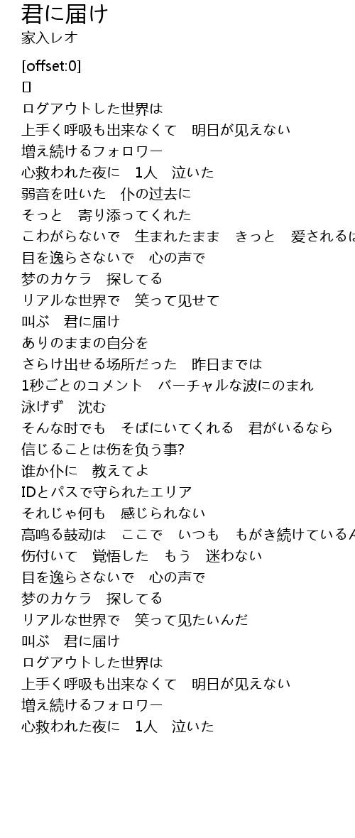 | [01:08.178] | リアルな世界で 笑って见せて |