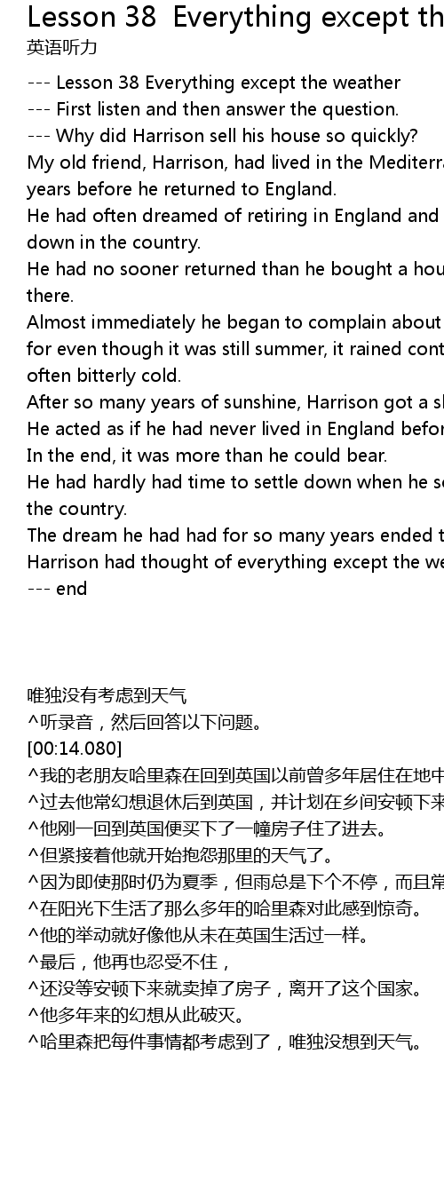 My old friend, Harrison, had lived in the Mediterranean for many years before he returned to England. |