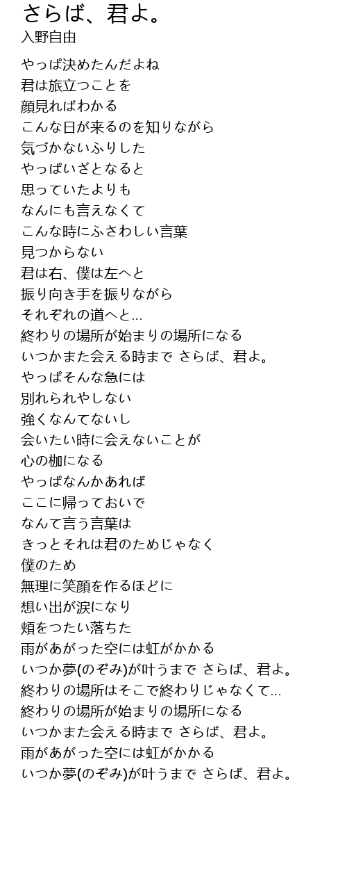 | いつか夢(のぞみ)が叶うまで さらば、君よ。 |