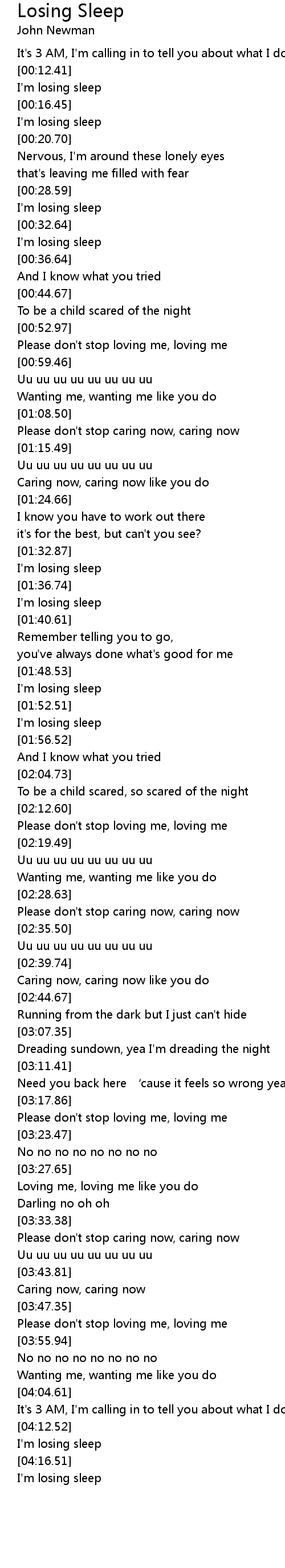 | [01:55.33] | I' m losing sleep |