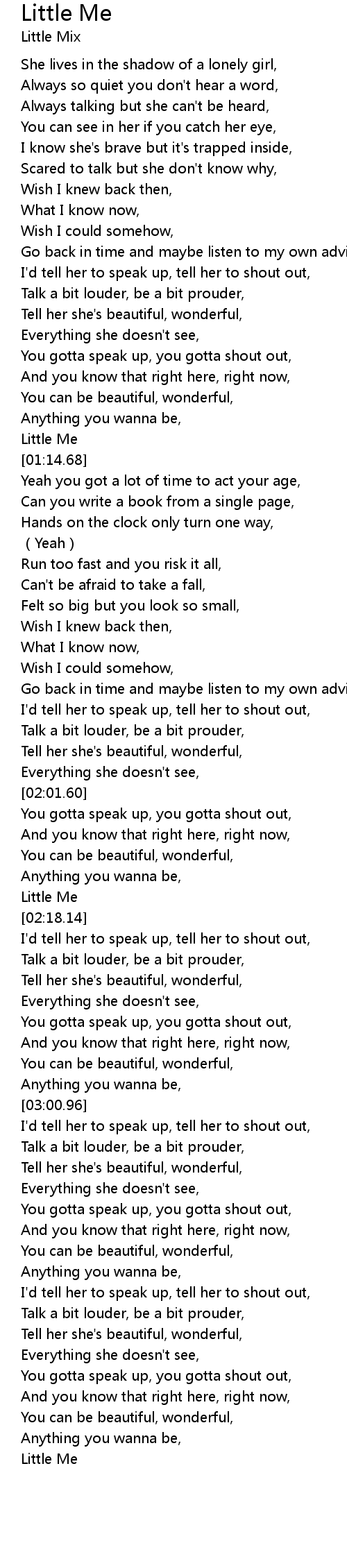 | [01:12.22] | Little Me |