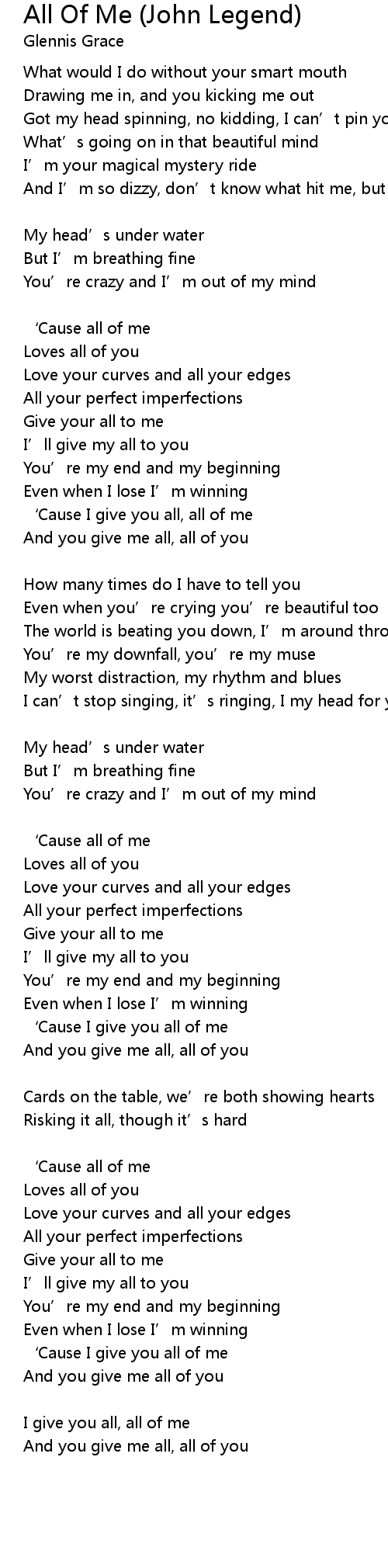 | ‘Cause I give you all, all of me | |
