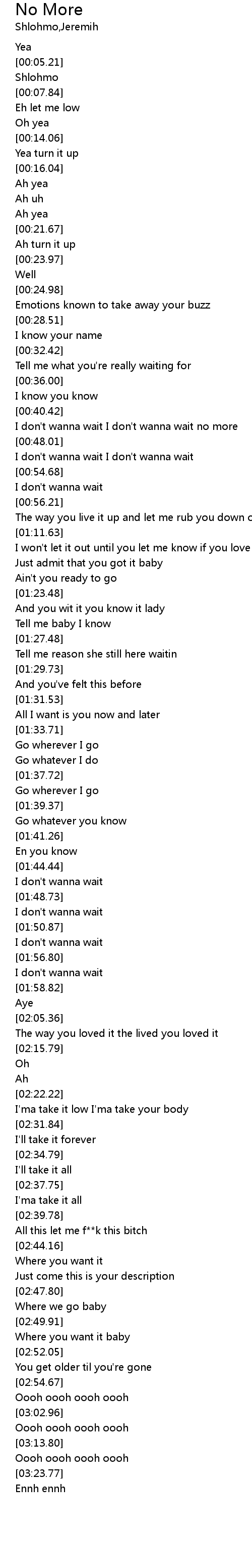 | [00:43.88] | I don't wanna wait I don't wanna wait no more |