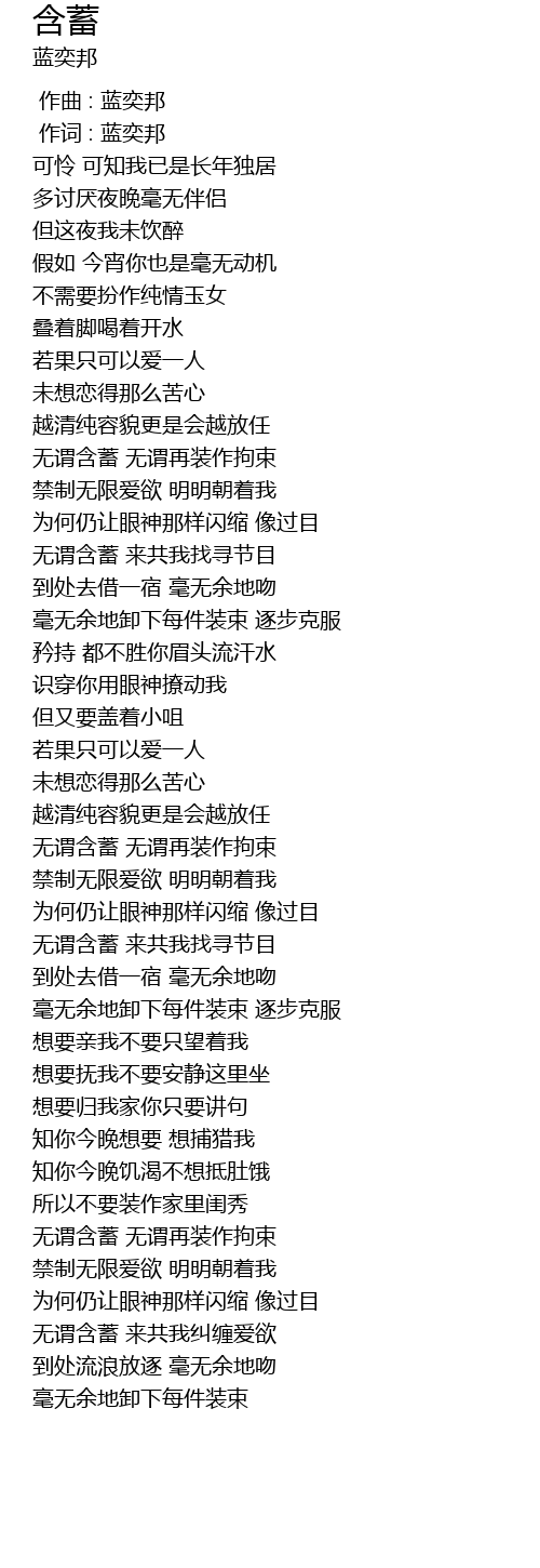 | [00:01.00] | 作词 : 蓝奕邦 |