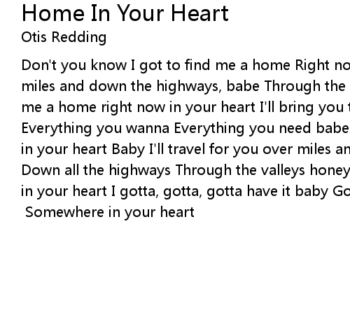 Don't you know I got to find me a home Right now in your heart I'll travel over miles and down the highways, babe Through the valleys every byway Just to find me a home right now in your heart I'll bring you to the music, refueling Everything you wanna Everything you need babe Just to have me a home right now in your heart Baby I'll travel for you over miles and Through the valley babe Down all the highways Through the valleys honey Just to find me a home right now in your heart I gotta, gotta, gotta have it baby Gotta find me a home I've got to have a big beautiful home [Ad lib] Somewhere in your heart |