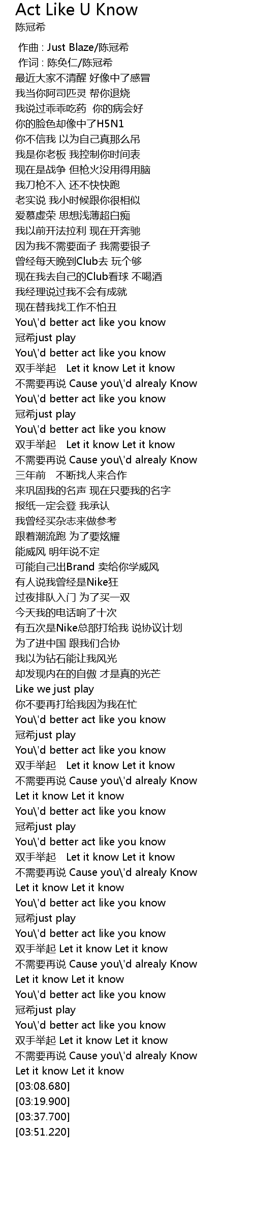 | [00:00.00] | 作曲 : Just Blaze/陈冠希 |