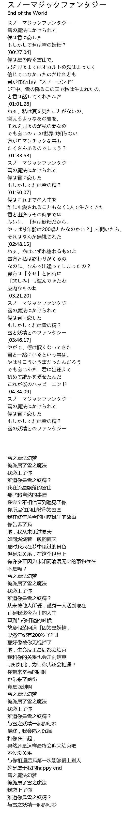| [03:21.81] | スノーマジックファンタジー |