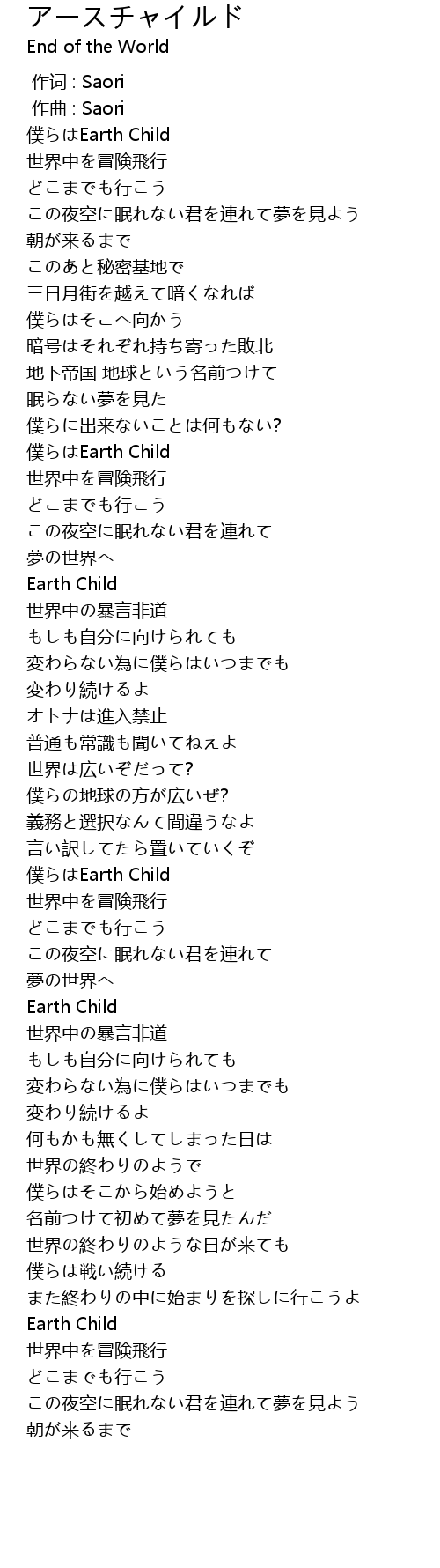 | [02:02.52] | 僕らはEarth Child |
