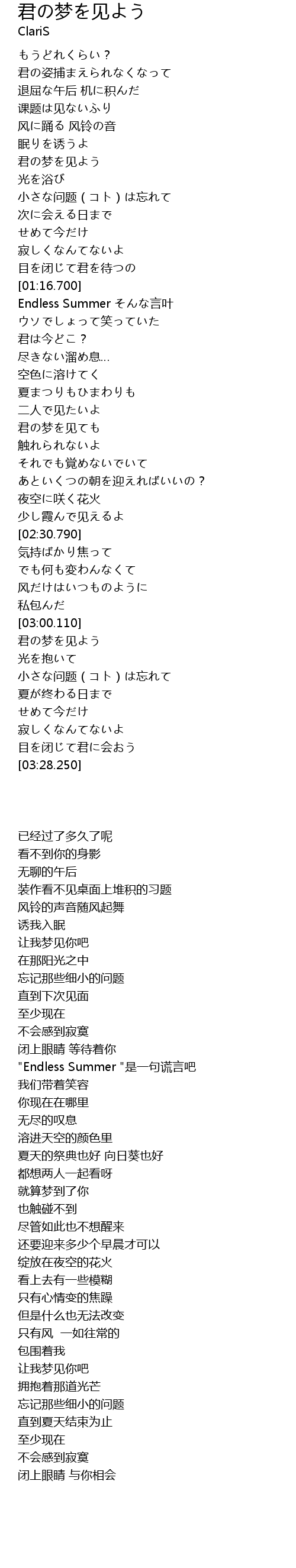 君の梦を见ても |