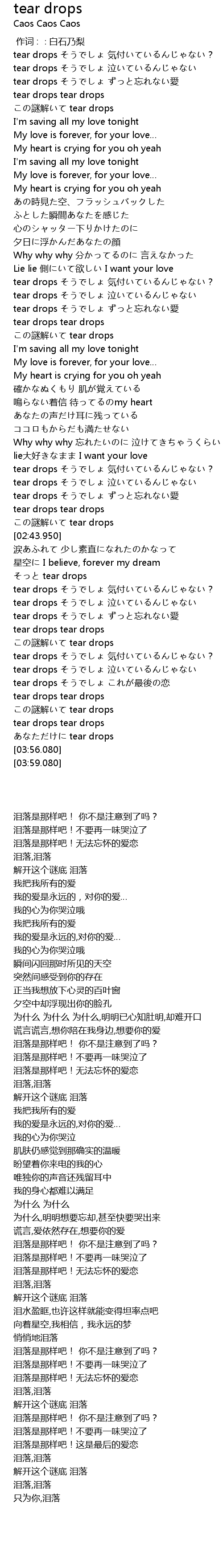 | [02:35.570] | tear drops そうでしょ ずっと忘れない愛 |