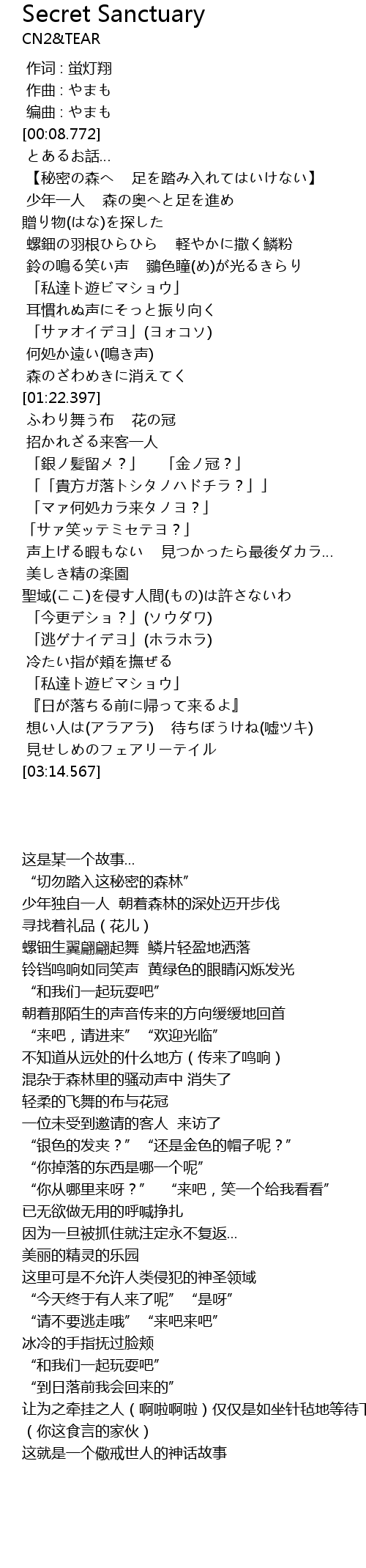 | [00:14.615] | 【秘密の森へ 足を踏み入れてはいけない】 |