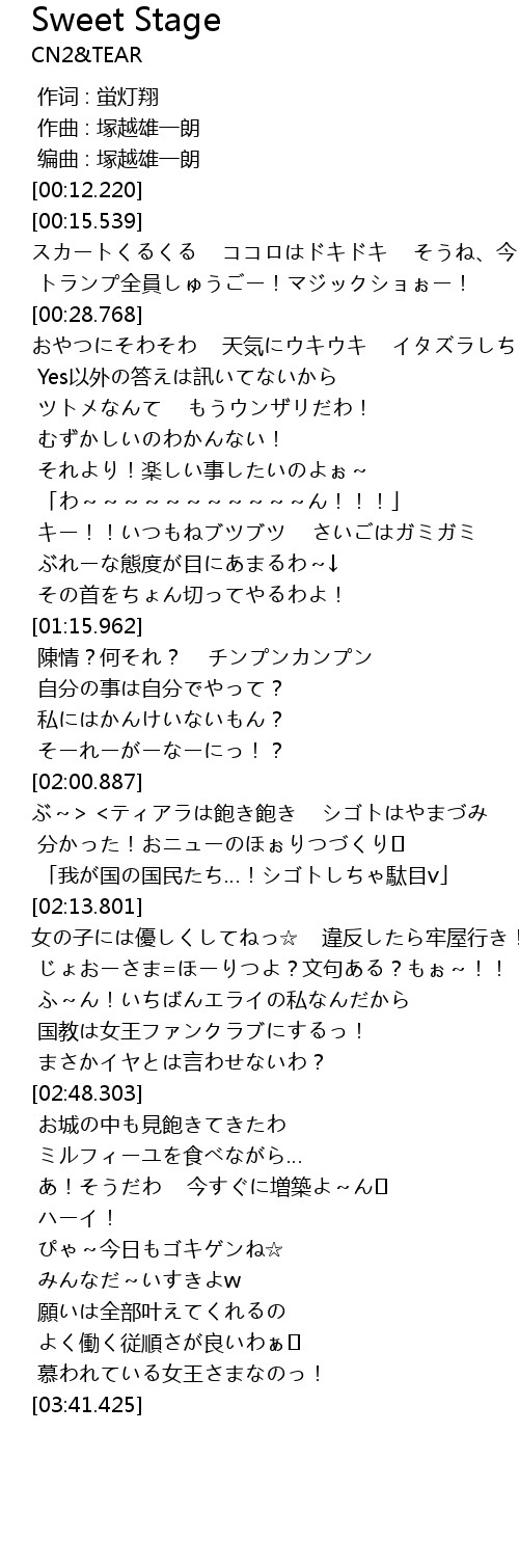 | [02:21.191] | じょおーさま=ほーりつよ?文句ある?もぉ~!! |