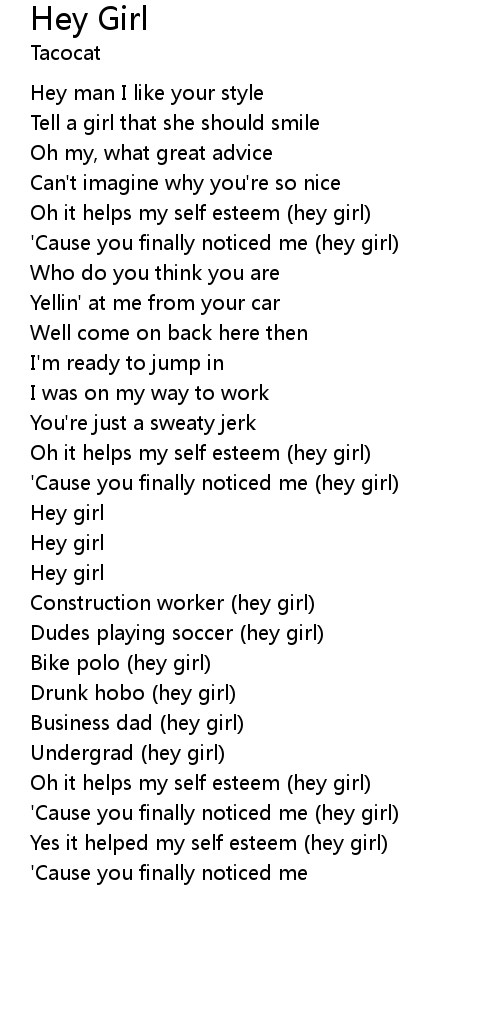 | [00:44.98] | Oh it helps my self esteem (hey girl) |